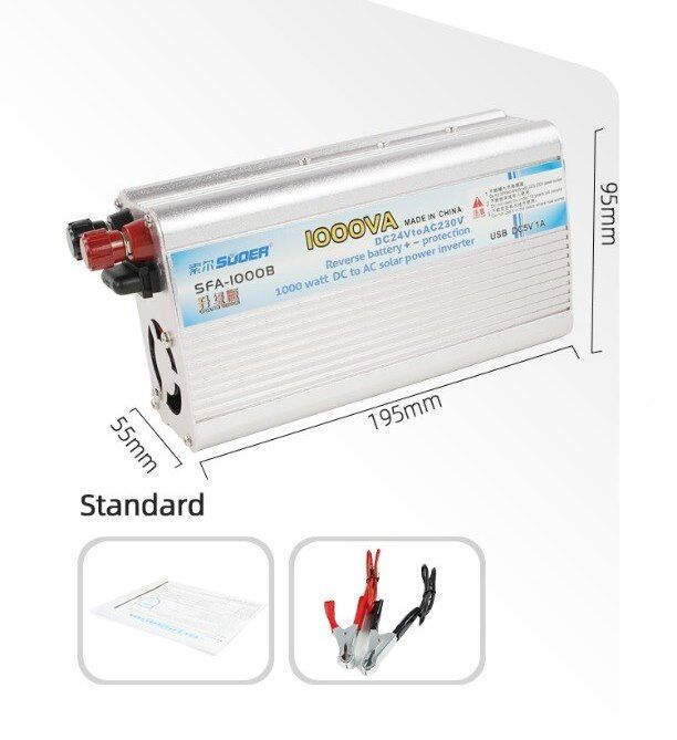 Máy kích điện chống ngược cực 24V 1000W chuyển điện bình 24V thành điện 220V dùng cho các thiết bị gia đình, cung cấp điện khi cúp điện