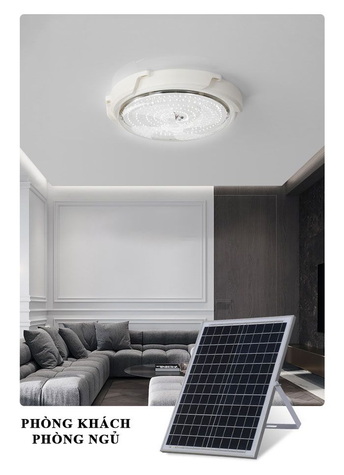 Nếu bạn muốn sử dụng đèn năng lượng mặt trời làm đèn chiếu sáng trong nhà thì không thể bỏ qua mẫu đèn ốp trần năng lượng mặt trời này nhé. Loại đèn này có thiết kế tương tự như các mẫu đèn led trần điện lưới truyền thống nhưng lại tăng thêm sự tinh tế cho không gian lắp đặt của bạn. Đèn có công suất và diện tích chiếu sáng tới 400 mét vuông. Hãy cùng Phúc Tín Solar tìm hiểu thêm về loại đèn chiếu sáng này nhé.