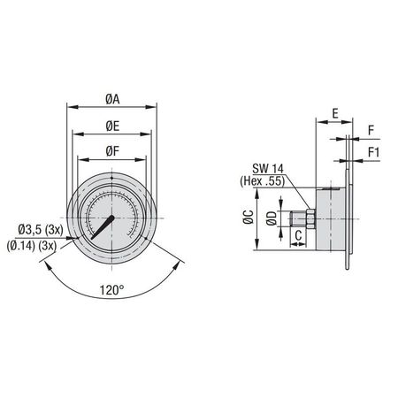 Đồng hồ đo áp suất SPG-063 (chân sau)