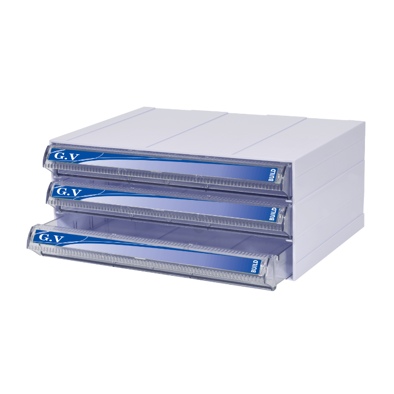 - Các ngăn kéo được làm bằng nhựa trong suốt, vì vậy bạn có thể kiểm tra bên trong mà không cần mở ngăn kéo. Có một thẻ ghi chú trên mỗi tay cầm để bạn có thể ghi tên sản phẩm cần lưu trữ.