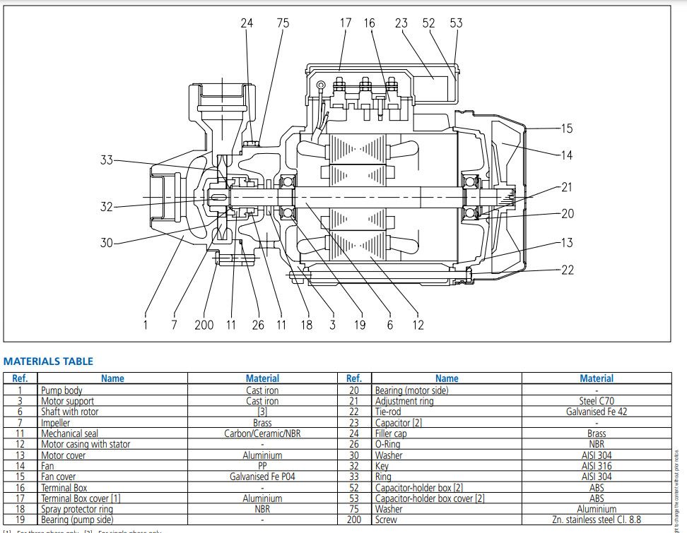 - Trục: AISI 303 (phần tiếp xúc với chất lỏng)