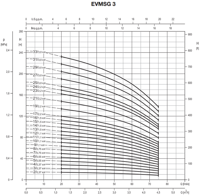 Máy bơm ly tâm trục đứng nhiều tầng cánh Ebara EVMSG3 2F5 Q1BEG E/0.37