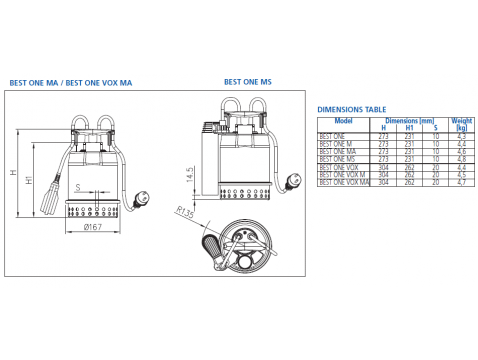 Máy bơm chìm nước thải Ebara Best là bơm chìm nước thải sạch với kích thước rắn tối đa 10mm với kết cấu thủy lực bằng thép không gỉ AISI 304