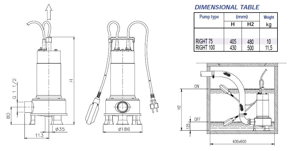 Máy bơm Ebara RIGHT là máy bơm nước bẩn thả chìm làm bằng thép không gỉ AISI 304. Thích hợp cho việc vận chuyển chất lỏng của hệ thống nước thải có lẫn một số chất rắn.