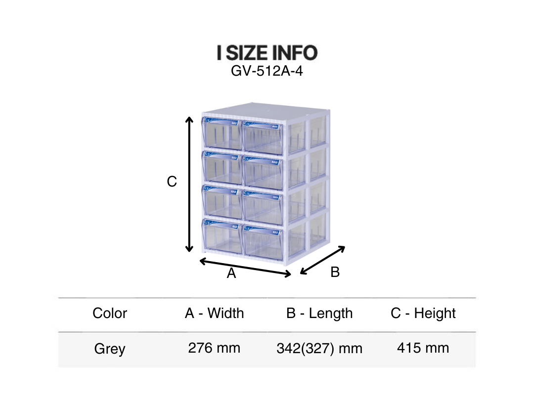Tủ đựng linh kiện điện tử, ốc, vít, bulong GV 512A-4 - Nhập khẩu trực tiếp từ Hàn Quốc
