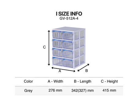 Tủ đựng linh kiện điện tử, ốc, vít, bulong GV 512A-4 - Nhập khẩu trực tiếp từ Hàn Quốc