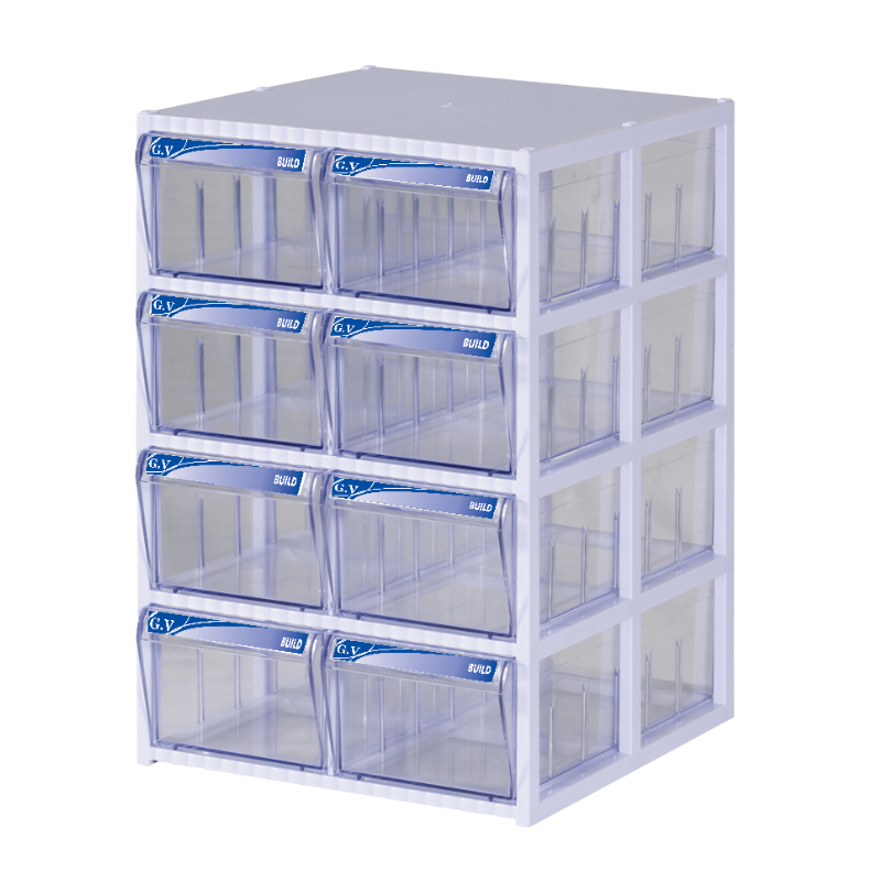 - Các ngăn kéo được làm bằng nhựa trong suốt, vì vậy bạn có thể kiểm tra bên trong mà không cần mở ngăn kéo. Có một thẻ ghi chú trên mỗi tay cầm để bạn có thể ghi tên sản phẩm cần lưu trữ.